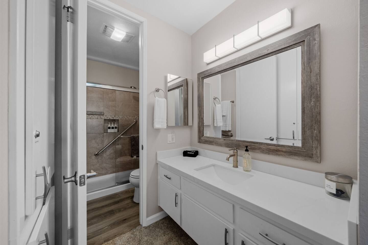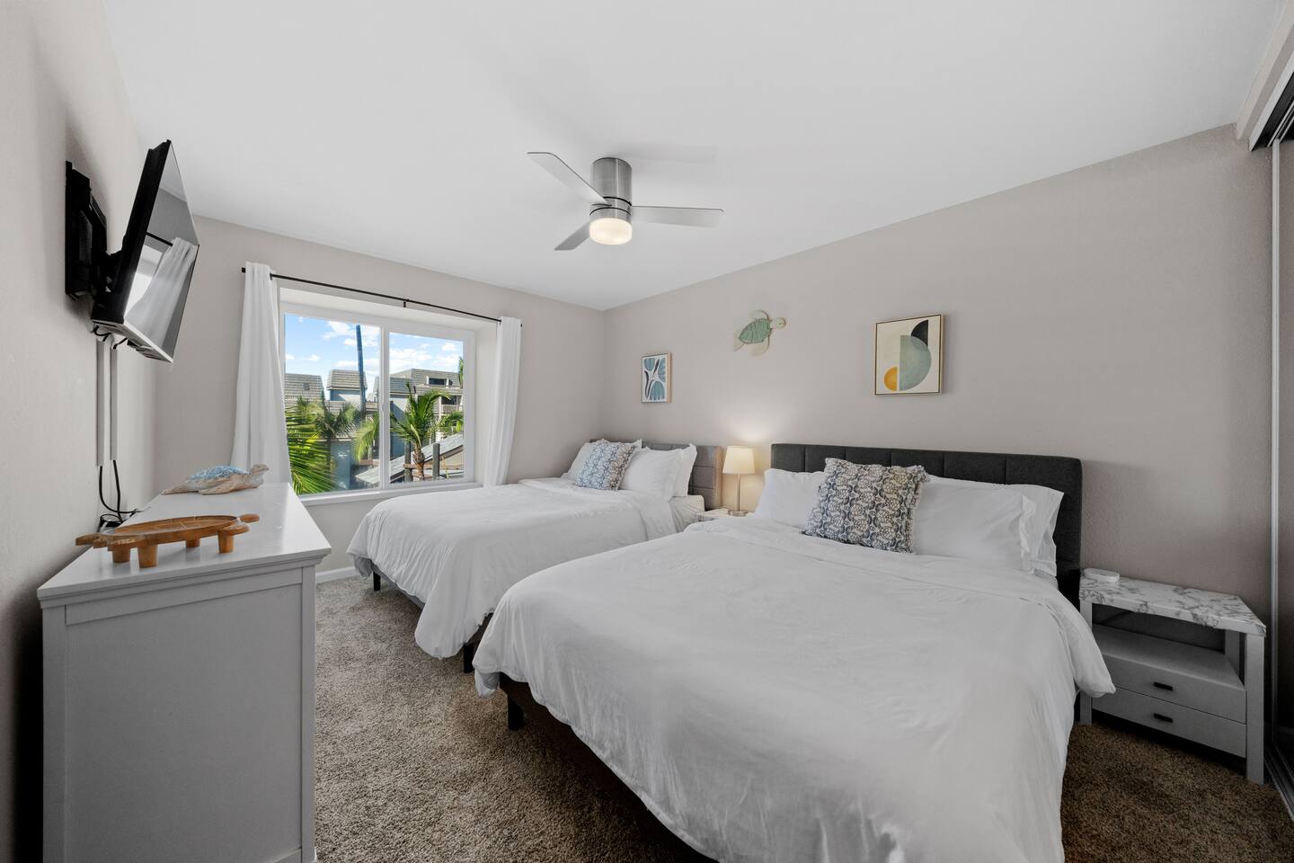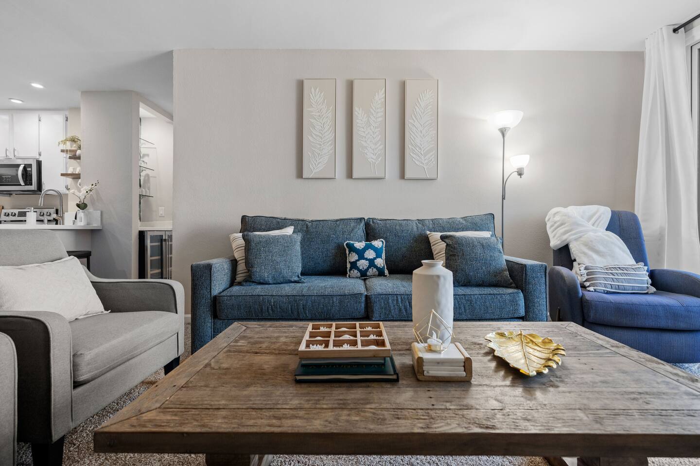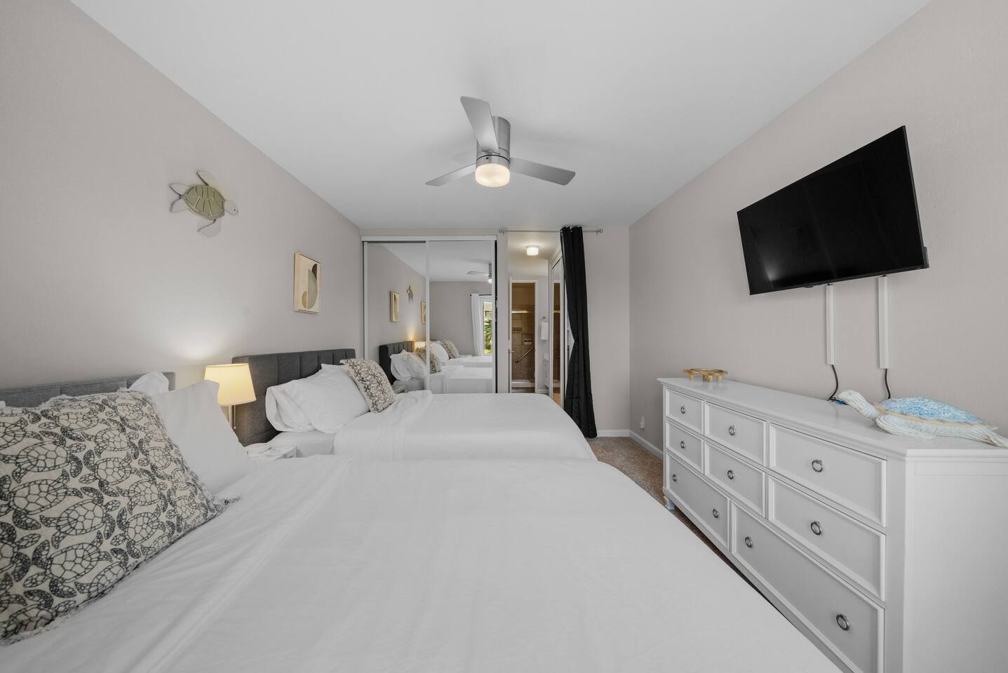 Welcome to Cozy Shell Villa at North Coast Village Escape to Cozy Shell Villa, a bright and tranquil two-story beachfront penthouse level tucked inside the lush, gated community of North Coast Village — one of the most desirable locations on the Oceanside shoreline. Just steps from the sand and a short walk to both the Pier and Harbor, this upper-level villa blends coastal charm with thoughtful comfort for families, couples, and work-from-anywhere travelers. From the moment you arrive, you’ll feel like you’ve entered your own private beach retreat. Towering palms, koi ponds, and waterfalls surround you as you stroll through the tropical gardens toward Building C (located in the middle for convenience and easy access). Inside, our home welcomes you with airy vaulted ceilings, stylish coastal décor, and spaces designed to unwind, reconnect, and recharge. The Space 2 bedrooms + sofa bed | 2 full bathrooms | 2 balconies The open living area invites you to sink into plush seating, stream your favorite shows on the flat-screen TV, or simply listen to the waves in the background. Open patio door or windows for some natural light and ocean breezes. Gourmet Kitchen – Fully stocked with everything you need: stainless-steel appliances, coffee station, blender, toaster, cookware, bakeware, and serving pieces. Whether you’re blending smoothies for the beach or hosting a family dinner, it’s all here. Dining & Gathering – A table for four (or extended it and add 2 extra chairs) plus breakfast-bar seating for two keeps everyone connected during meals or game night. Primary Loft Suite – Upstairs, the semi-private loft features a California King bed, ensuite bathroom with tub/shower, dresser space, and a balcony perfect for sunrise coffee or sunset wine. A walk-in closet has been converted into a flex workspace or baby room, complete with desk, chair for quick light work—or space for a pack-and-play. Lower-Level Bedroom – Serene retreat with Queen bed, blackout curtains, and spacious double closets stocked with extra linens, blankets, steamer, and beach towels. Bathrooms – Two full baths (one upstairs, one down) each stocked with plush towels, shampoo, conditioner, body wash, hair dryer, and thoughtful touches. Extras – Fast Wi-Fi, convenient USB charging outlets, ceiling fans throughout, wall heaters for cool evenings, and two furnished balconies for fresh coastal air. Please note: Condo it not equipped with air conditioners so multiple fans including ceiling fans are located throughout for comfort. Resort Amenities Your stay includes access to all the North Coast Village amenities: - Two resort-style pools & grotto-style hot tubs - Sauna & fitness center (ages 14 +) - Game & recreation rooms with ping-pong and billiards - Putting greens & tropical gardens with koi ponds - Outdoor BBQ stations and picnic areas - Community with 24-hour patrol - Direct beach access just steps from your building Parking & Access You’ll have one assigned garage space (#5-43) in Dolphin Cove garage. The HOA front desk provides your key fob and map at check-in (Patrol will continue to check in for after-hours arrivals). Additional paid parking is available nearby. Thoughtfully Hosted We’ve stocked the villa with everything we look for when traveling as a family: comfortable linens, extra beach towels, steamer, board games, and even a few local insider tips in your digital guide. Whether you’re planning a beach weekend, romantic escape, or an extended stay by the sea, Cozy Shell Villa offers comfort, convenience, and a touch of coastal magic you’ll want to revisit year after year.