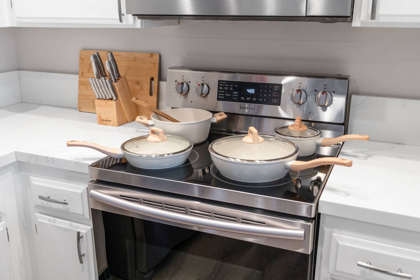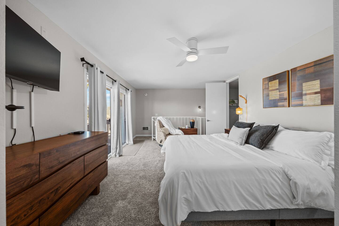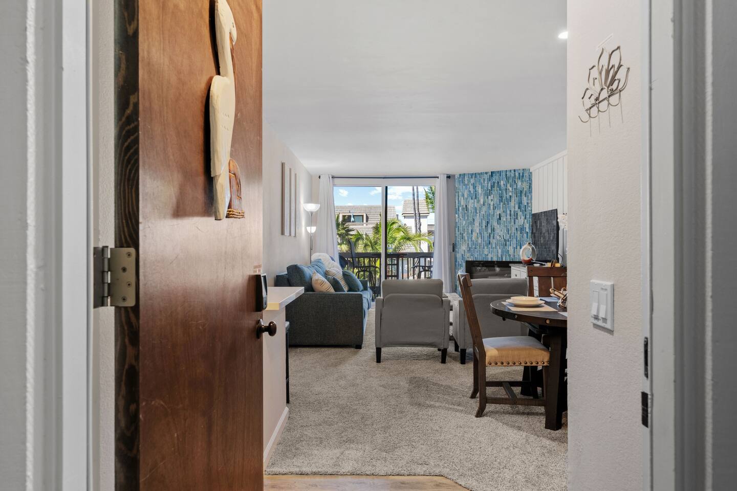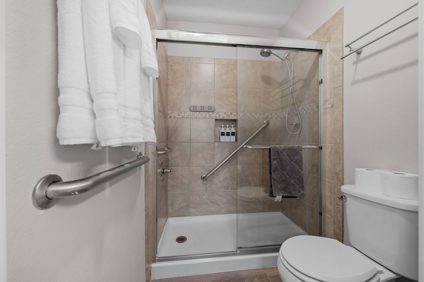 Welcome to Cozy Shell Villa at North Coast Village Escape to Cozy Shell Villa, a bright and tranquil two-story beachfront penthouse level tucked inside the lush, gated community of North Coast Village — one of the most desirable locations on the Oceanside shoreline. Just steps from the sand and a short walk to both the Pier and Harbor, this upper-level villa blends coastal charm with thoughtful comfort for families, couples, and work-from-anywhere travelers. From the moment you arrive, you’ll feel like you’ve entered your own private beach retreat. Towering palms, koi ponds, and waterfalls surround you as you stroll through the tropical gardens toward Building C (located in the middle for convenience and easy access). Inside, our home welcomes you with airy vaulted ceilings, stylish coastal décor, and spaces designed to unwind, reconnect, and recharge. The Space 2 bedrooms + sofa bed | 2 full bathrooms | 2 balconies The open living area invites you to sink into plush seating, stream your favorite shows on the flat-screen TV, or simply listen to the waves in the background. Open patio door or windows for some natural light and ocean breezes. Gourmet Kitchen – Fully stocked with everything you need: stainless-steel appliances, coffee station, blender, toaster, cookware, bakeware, and serving pieces. Whether you’re blending smoothies for the beach or hosting a family dinner, it’s all here. Dining & Gathering – A table for four (or extended it and add 2 extra chairs) plus breakfast-bar seating for two keeps everyone connected during meals or game night. Primary Loft Suite – Upstairs, the semi-private loft features a California King bed, ensuite bathroom with tub/shower, dresser space, and a balcony perfect for sunrise coffee or sunset wine. A walk-in closet has been converted into a flex workspace or baby room, complete with desk, chair for quick light work—or space for a pack-and-play. Lower-Level Bedroom – Serene retreat with Queen bed, blackout curtains, and spacious double closets stocked with extra linens, blankets, steamer, and beach towels. Bathrooms – Two full baths (one upstairs, one down) each stocked with plush towels, shampoo, conditioner, body wash, hair dryer, and thoughtful touches. Extras – Fast Wi-Fi, convenient USB charging outlets, ceiling fans throughout, wall heaters for cool evenings, and two furnished balconies for fresh coastal air. Please note: Condo it not equipped with air conditioners so multiple fans including ceiling fans are located throughout for comfort. Resort Amenities Your stay includes access to all the North Coast Village amenities: - Two resort-style pools & grotto-style hot tubs - Sauna & fitness center (ages 14 +) - Game & recreation rooms with ping-pong and billiards - Putting greens & tropical gardens with koi ponds - Outdoor BBQ stations and picnic areas - Community with 24-hour patrol - Direct beach access just steps from your building Parking & Access You’ll have one assigned garage space (#5-43) in Dolphin Cove garage. The HOA front desk provides your key fob and map at check-in (Patrol will continue to check in for after-hours arrivals). Additional paid parking is available nearby. Thoughtfully Hosted We’ve stocked the villa with everything we look for when traveling as a family: comfortable linens, extra beach towels, steamer, board games, and even a few local insider tips in your digital guide. Whether you’re planning a beach weekend, romantic escape, or an extended stay by the sea, Cozy Shell Villa offers comfort, convenience, and a touch of coastal magic you’ll want to revisit year after year.